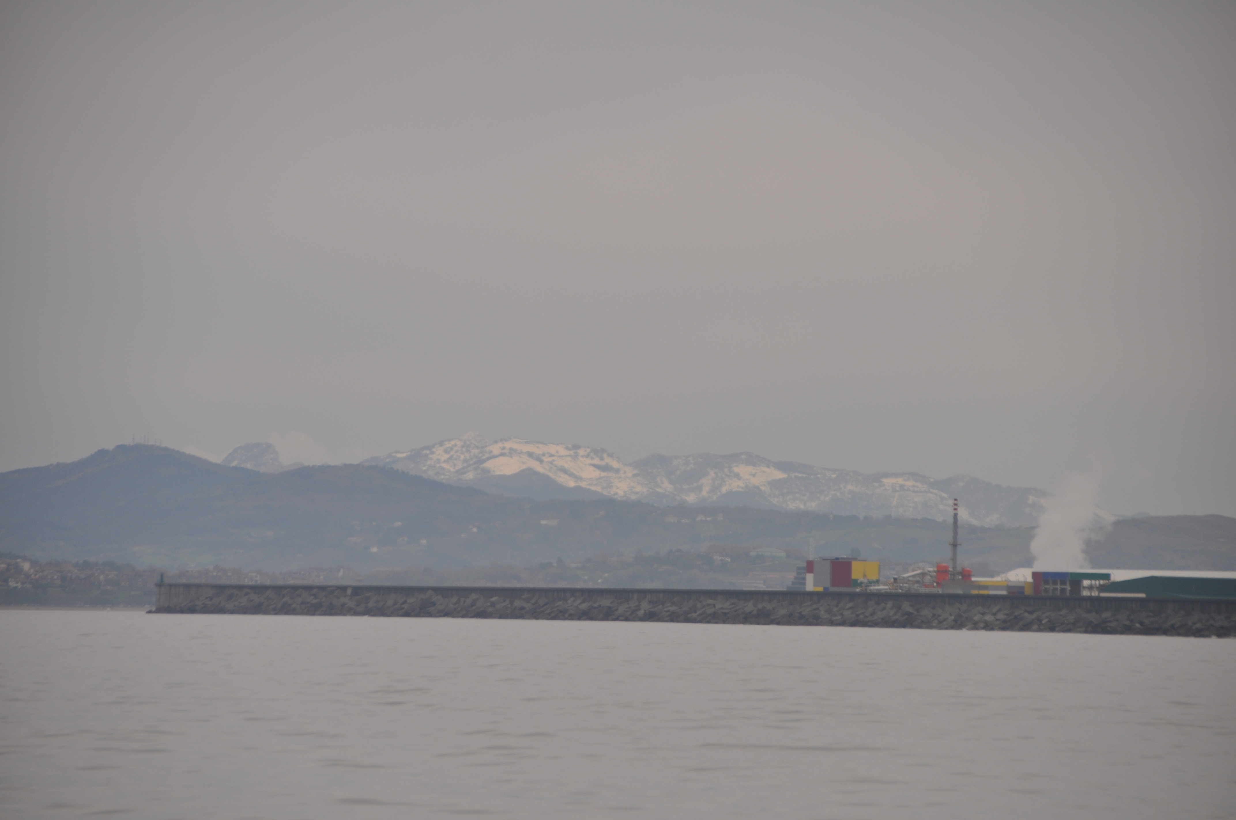 The wind dropped away in the wee hours of the morning but picked up to 30kt as the sun came up and we approached the Spanish coast. We passed a few fishing boats on the way in to Bilbao. The entrance is a little tricky as there is a breakwater that is underwater (but shown on the charts).