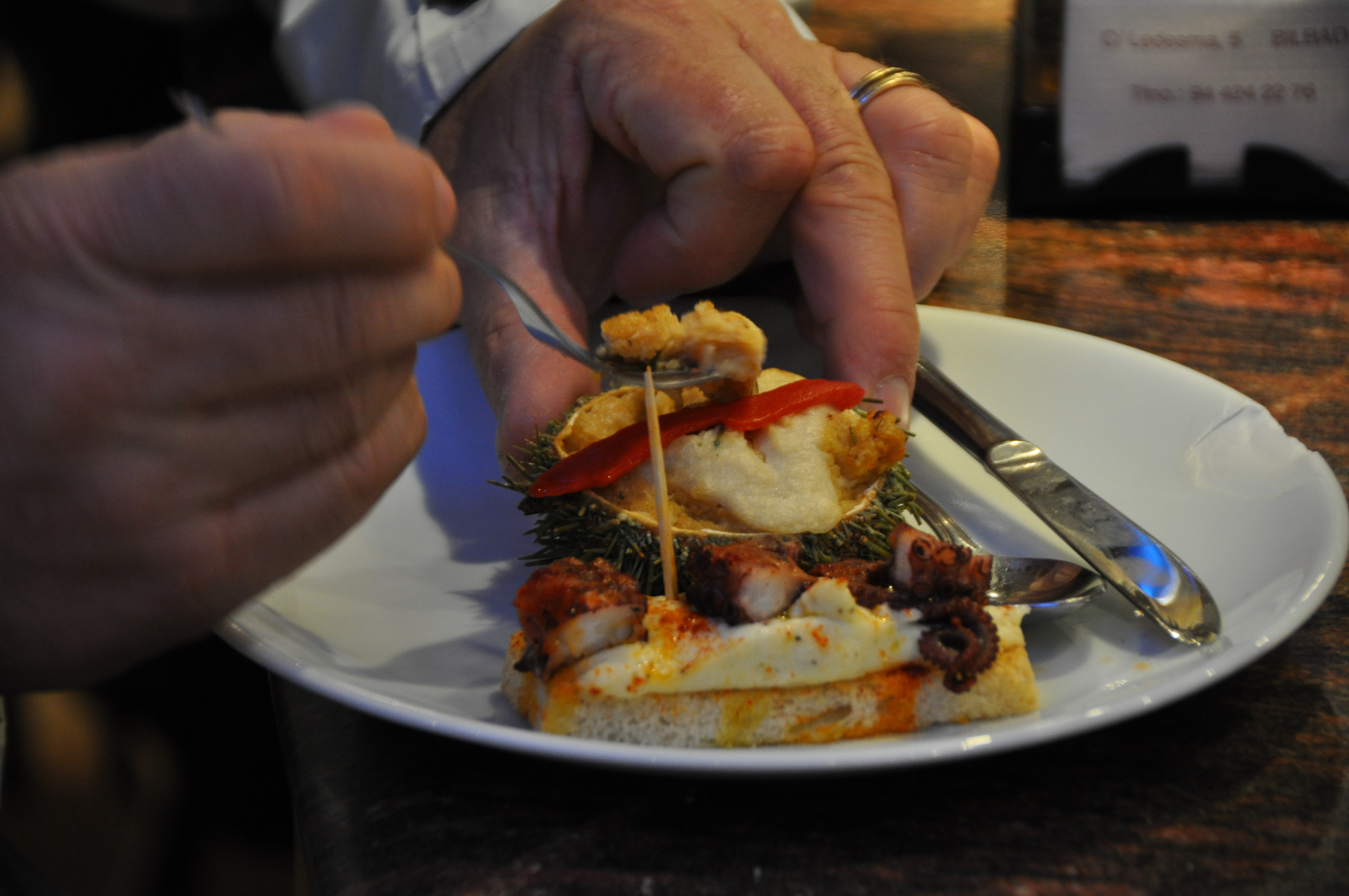 Then I took a walk along the expansive boulevards that run along the river to the old city, with its narrow streets, old churches and tapas bars. Called in for a drink, it was only about 7pm so too early for dinner. After exploring the old city, crossed over the old bridge and back into the centre of town where I’d previously spotted some rather trendy Tapas Bars. The food is all laid across the top of the bar and you just chose what you want. You keep count and tell the bar person, when you are finished. 3 Tapas will more than fill you up – I had 4! At 2 Euro each plus 1.70 Euro for a glass of cianza it was a bargain.