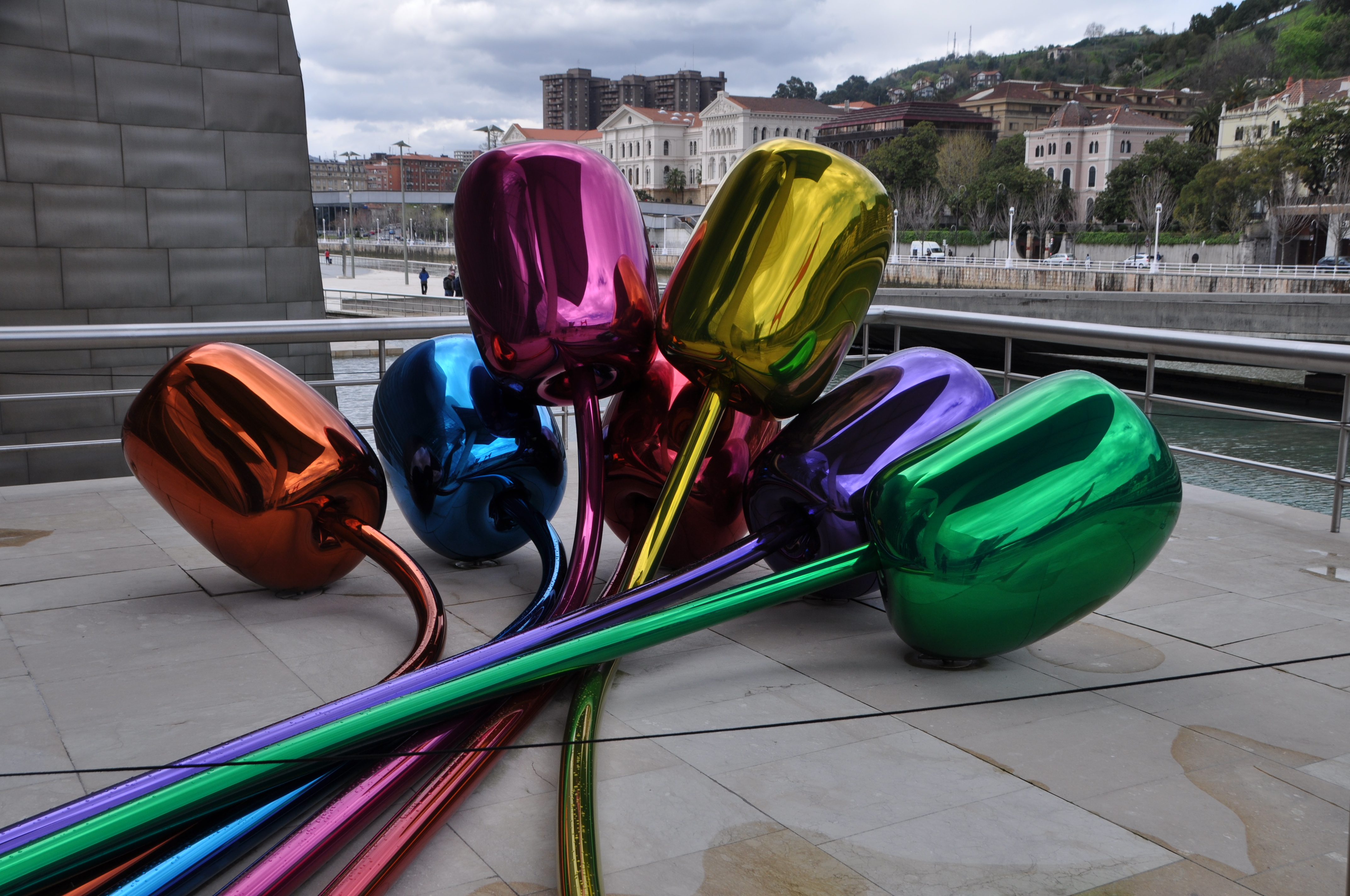 After lunch, we hopped on the metro again and headed back into Bilbao. Its was Tuesday (from memory) and the Peggy Guggenheim was open. We wandered through for a couple of hours but it didn’t seem as good inside as the ones in NY or Venice – there was some Picasso paintings and a single Dali, as well as an Andy Warhol Marilyn montage. But outside, it was simply stunning.