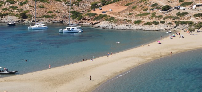 Morning could not come soon enough. As soon as it did, we were able to see more clearly what we were up against and managed to drop the other anchor off. Then it was off to find another bay. We motored up and down the south coast checking a few out and then came back to the first one – Platys Gyalos.