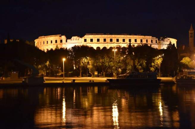 Back at the boat, we sat waiting for Pula’s latest attraction, a stunning lighting display at the city’s shipyards, just off the front of the boat.