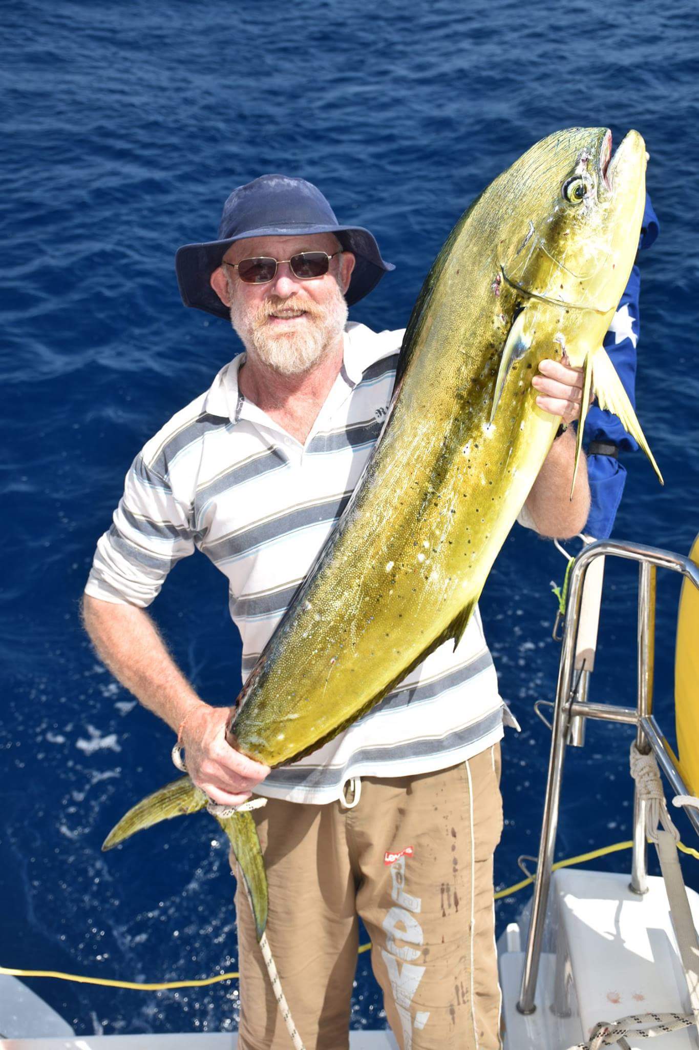 We thought we’d have a go at filling up the freezer before we arrived given we will have 5 hungry mouths to feed. Phil ordered Wahoo – but all we got was a baby mahi mahi that we threw back