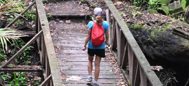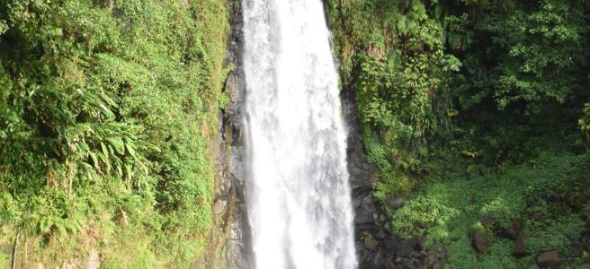Our last stop of the day was Trafalgar Falls, two very impressive falls, and here we walked/climbed out to the base of the falls over some slippery rocks and sat in the warm sulphur pools at the base of the falls. By the time we scampered back down again it was getting dark and we were glad to get off the rocks whilst we still had a smidgen of light. Another great day on Dominica.