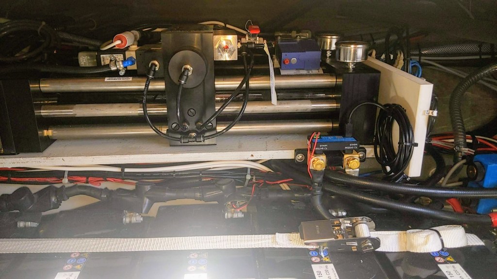 We got Pochon to install a Cerbo GX and its associated GX Colour Screen. These required a Smartshunt and a Victron Battery Temperature Monitor, which were also needed for the SmartSolar MPPT VE.SMART Bluetooth Network. This works really well, you can get up each morning and check how the batteries, solars and tank levels are going. However there is a hardware problem with the Wifi antenna and the HDMI cable being too close to one another meaning the CERBO GX cannot connect to the boat’s Wifi. Have played around with the channels on the wifi router as per Victron’s advice but no luck as yet.